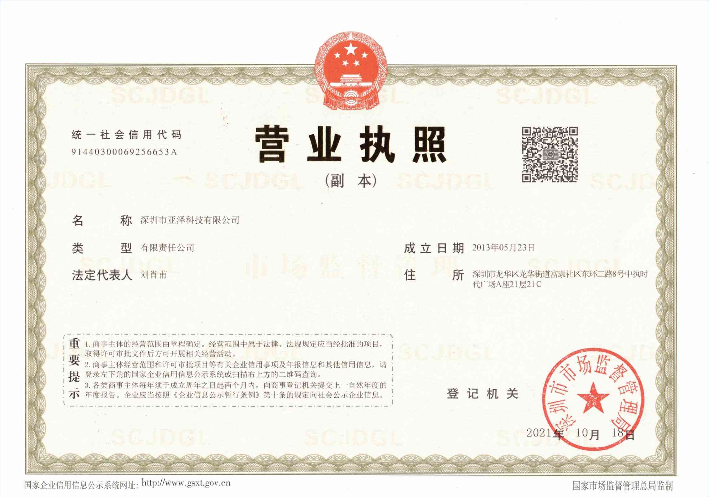 • 深圳亞澤營業(yè)執(zhí)照