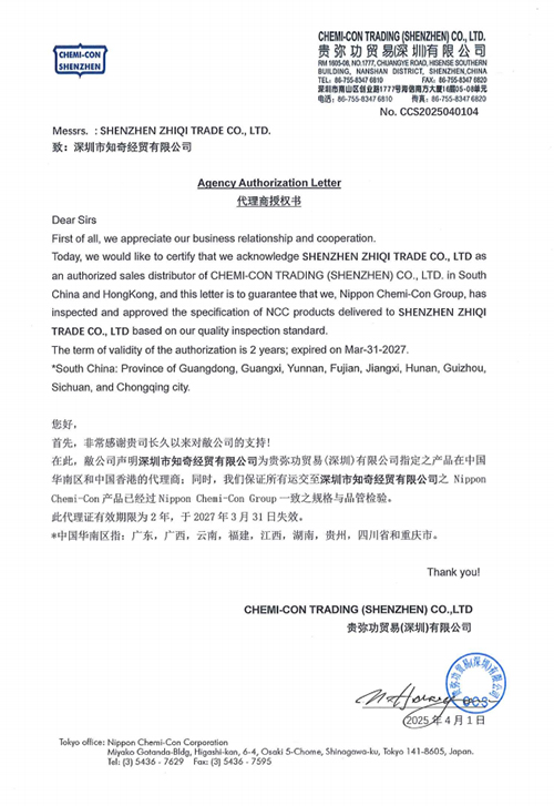 深圳市亞澤科技有限公司是NCC黑金剛電容一級代理商, 目前獲得:日本黑金剛(NIPPON CHEMI-CON)電容、韓國三瑩(S...